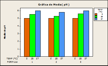 Figura 1. Comportamiento del pH en las diferentes formulaciones sometidas al estudio de estabilidad preliminar