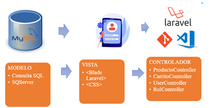 Se implementa el MVC ya que es una estructura de software muy útil para el desarrollo de sistemas web progresivos de comercio electrónico con pasarela de pagos online, siendo este el caso que ocupa la presente investigación, esta ofrece ventajas que incluyen la facilidad de mantenimiento, la reutilización, la seguridad y la escalabilidad. A continuación, la Figura 2: