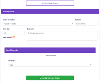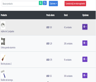 La Figura 8 muestra la interfaz de stock de productos del sistema software. Esta interfaz permite a los usuarios administrar el stock de productos y pueden ver una lista de todos los productos en stock, así como su cantidad.
