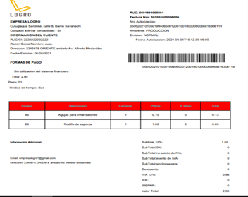De igual manera, se adoptó la facturación electrónica de acuerdo con la normativa ecuatoriana, ya que ofrece ventajas como seguridad, integridad, mejora de procesos y facilita la gestión de documentos. En una definición sobre facturación electrónica, se tiene que es un: