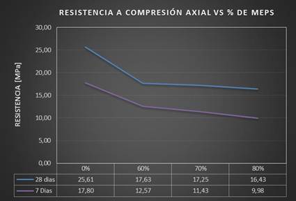 Figura 10. Resistencia a compresión axial con respecto a la cantidad de MEPS